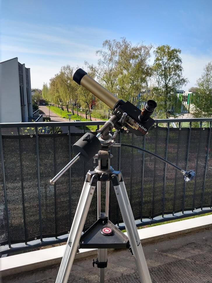 Hier is onze Coronado te zien op een EQ1 montering. Een opening van 40mm en een brandpuntsafstand van 400mm maakt dit een f10 telescoop