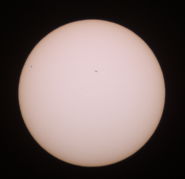 We hebben het een beetje kunnen volgen. En het is een mooie ontwikkeling! Zoals we zien is hij geen een-geheel meer, ten opzichte met die van gisteren! Wel zien we op onze detail opname een donkere rand lopen, over het zonsoppervlak!