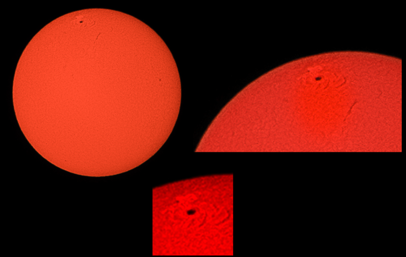 Hier weer mooi vastgelegd met de 80mm F5, bij een vergroting van 44X voor de hele zon, 100X voor de beide detailopnames.