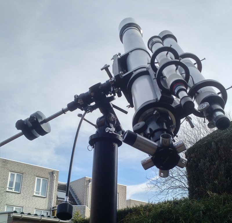 En weer waren de weergoden ons gunstig gezind op die bewuste zaterdag. stralend zomerweer, om 19:30u open, en rond 20:00u kwamen de eerste bezoekers! En ondanks het feit dat er in het bevrijdingspark een groot openlucht festival aan de gang was wisten enkele tientallen bezoekers ons te vinden. Wederom waren er complete gezinnen incl. grootouders erbij, en ook nu weer veel belangstelling voor onze op die avond toegespitste presentatie! Veel uitleg ook bij de 310mm F5 hoofdkijker en 102 mm lenzentelescoop; deze lieten heel mooi de Maan en later ook Alcor en Mizar zien als voorbeeld van een fraaie dubbester! Het was weer een top-activiteit...